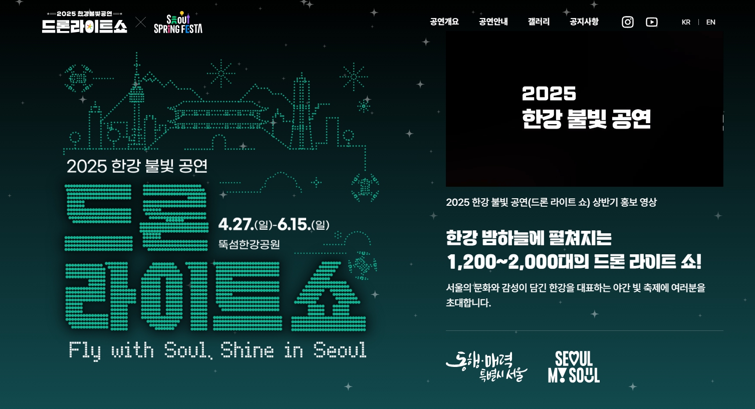 2025년 봄, 서울시는 뚝섬한강공원에서 총 5회에 걸친 드론라이트쇼를 개최합니다.