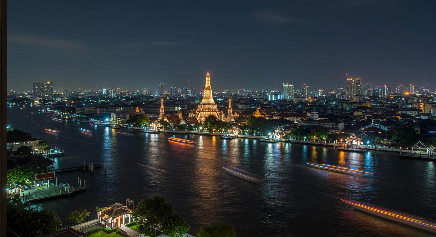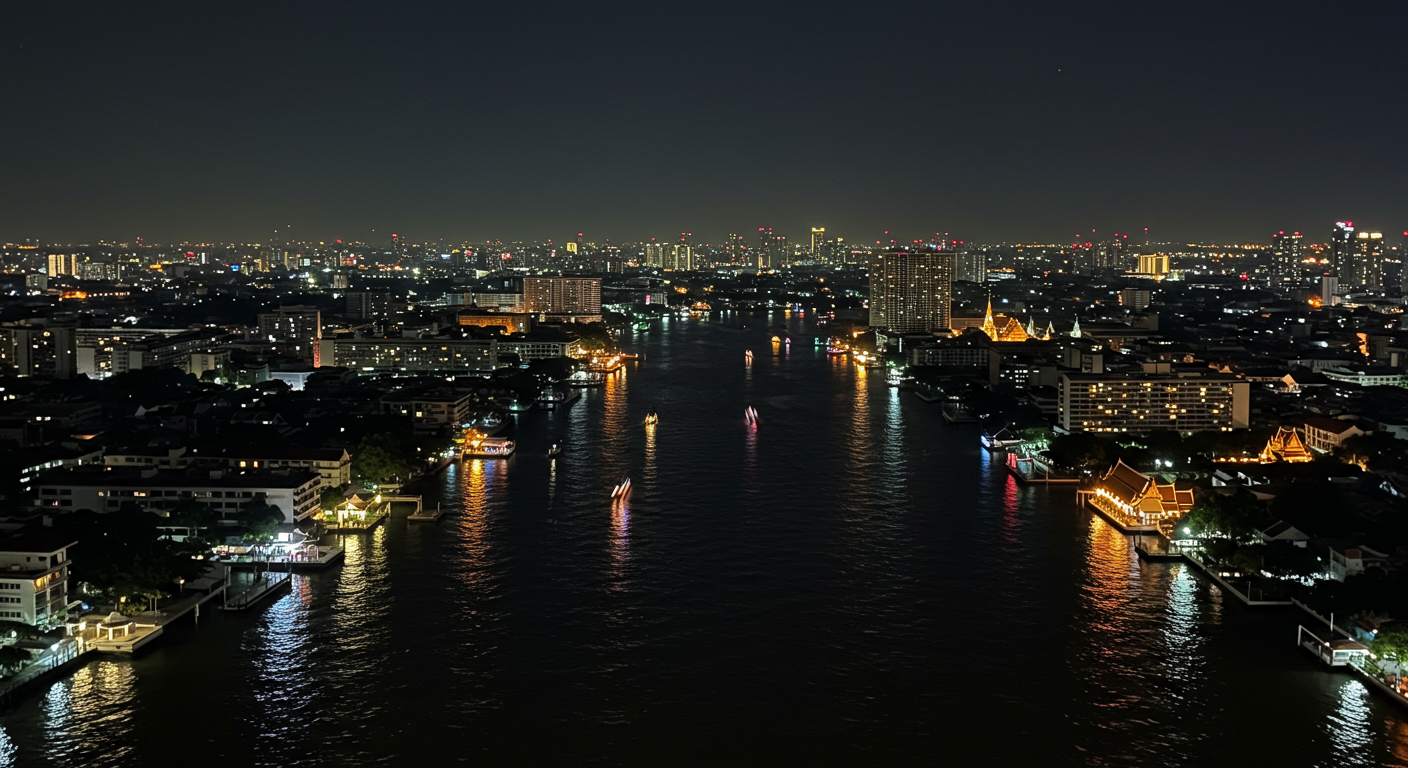 차오프라야강 옆, 석양 명소로 소문난 강변 리조트.