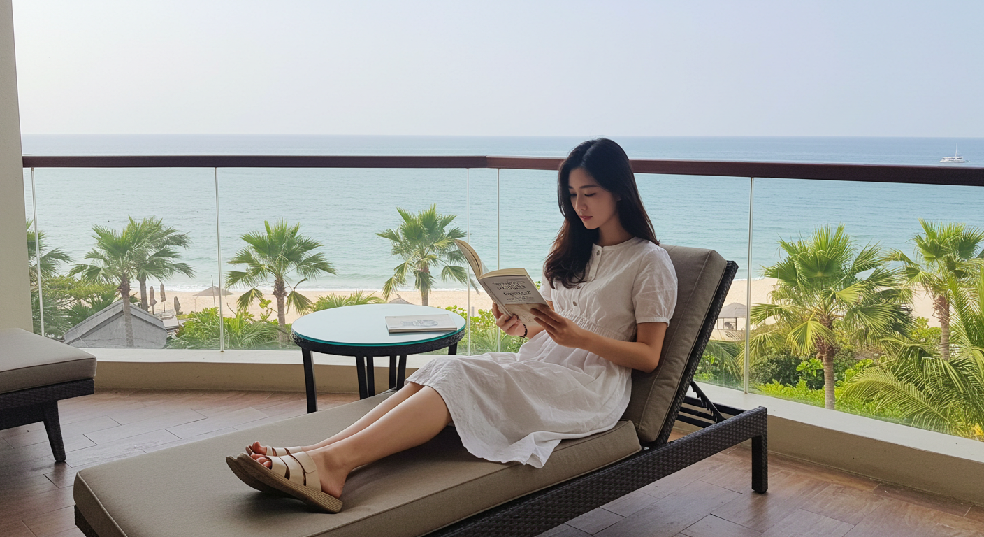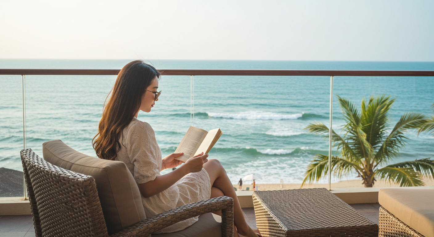 조용한 발코니에 앉아 붉게 물든 바다를 바라보는 그 시간, 진짜 힐링이었어요.