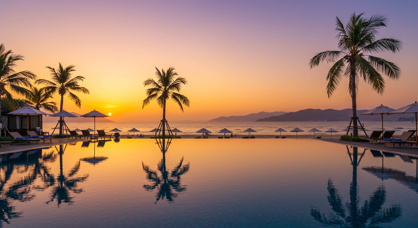 탁 트인 바다, 조용한 리조트, 석양 지는 수영장…