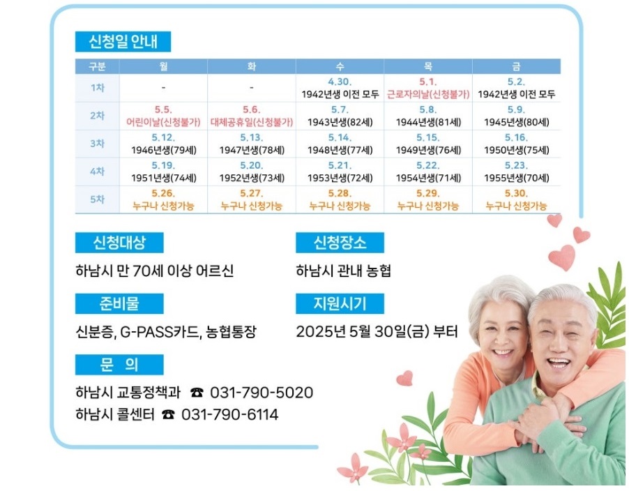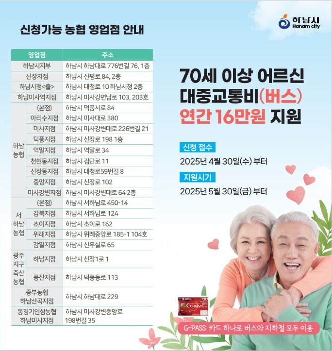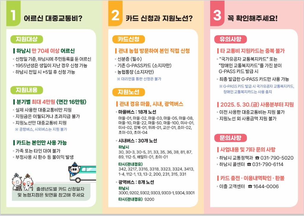하남시에서 2025년부터 시행하는 ‘통하남 어르신 교통비 지원’ 정책,