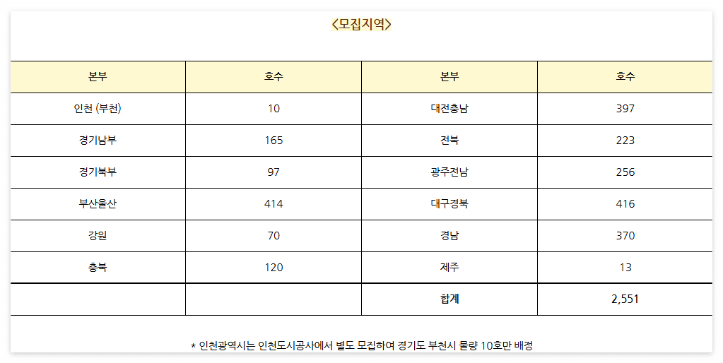 수도권에는 서울 1,449호, 인천 500호, 경기 772호 등 2,721호가 배정되고, 비수도권에도 총 2,279호가 공급됩니다.