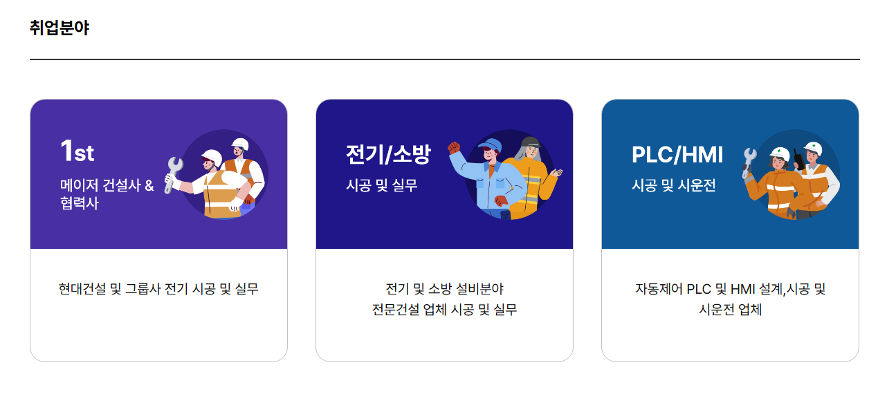 실제로 수료 후 바로 현장에 투입된 사례가 많으며, 전기설비 연봉 수준은 업계 평균 이상입니다. 전기 분야의 실무 경력을 쌓기 위한 최적의 출발점이 될 수 있습니다.