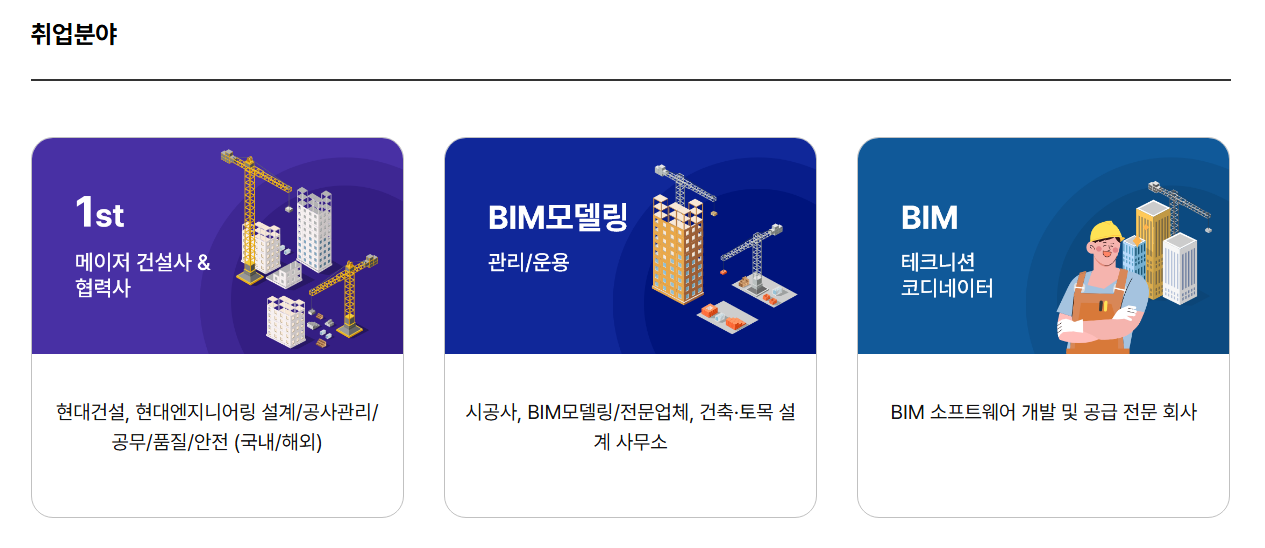 BIM 엔지니어, 시공 매니저, 건설 IT 담당자 등 디지털 건설 분야의 다양한 직무로 진출할 수 있습니다.