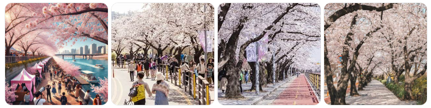 보통 서울의 벚꽃은 4월 초~중순 사이에 만개합니다. 따라서 축제 기간 중 4월 5~6일 주말 즈음이 가장 화려한 풍경을 볼 수 있는 시점입니다. 날씨가 흐리지 않다면 인생샷 건지기 딱 좋은 타이밍이에요!